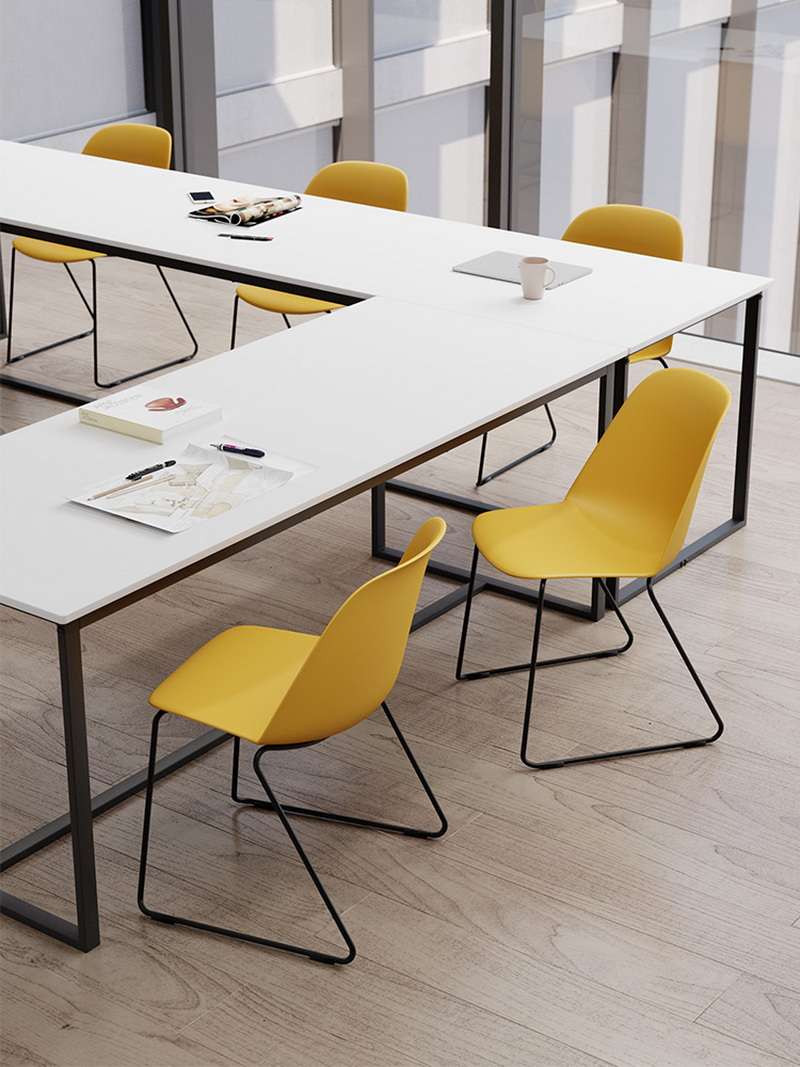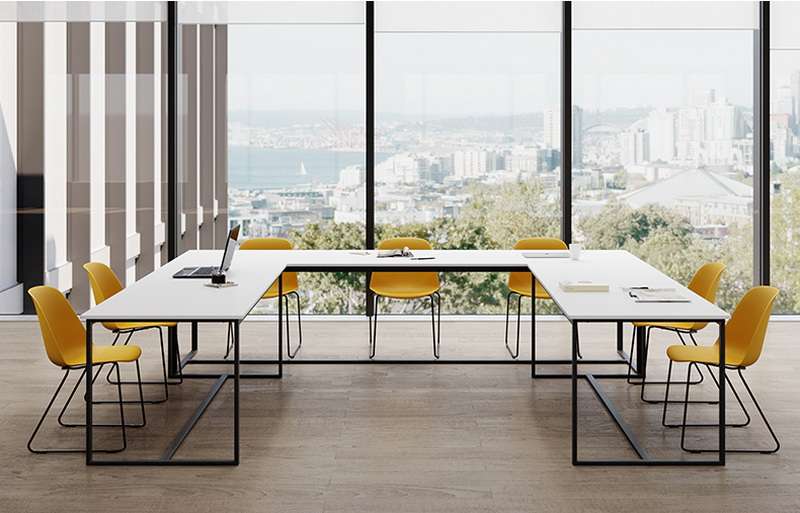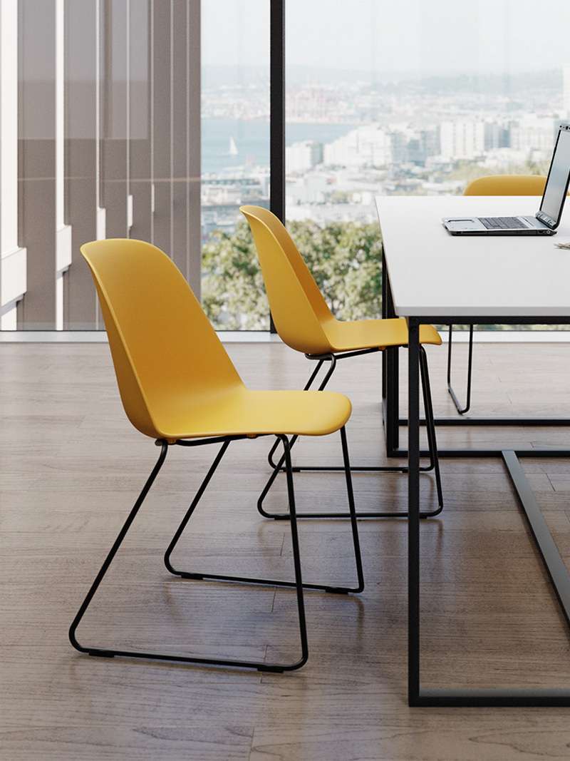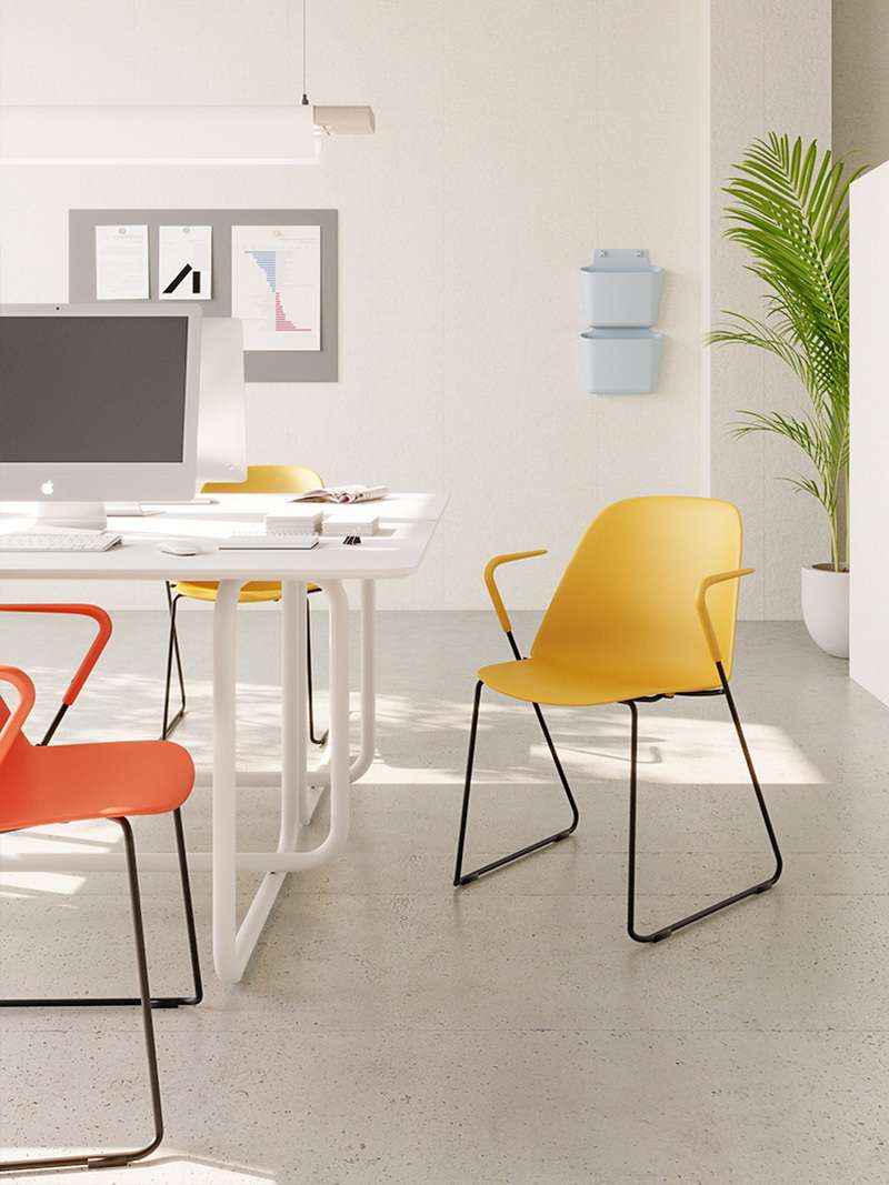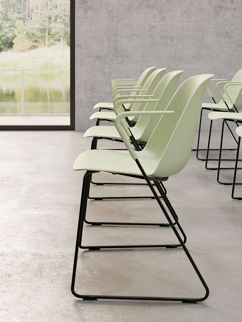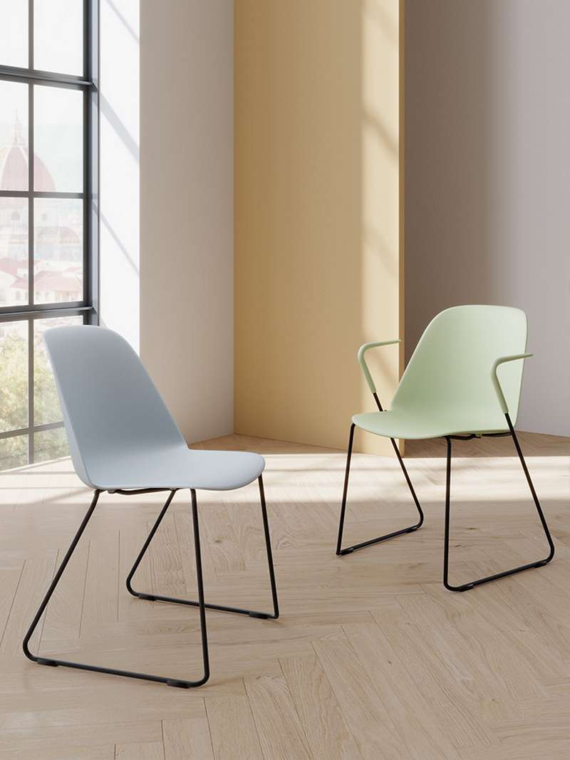 The thin, tough back of the chair creates a sense of visual lightness.